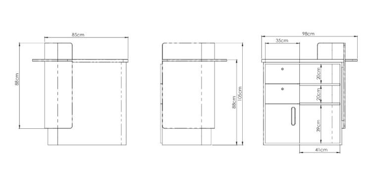 Box reception in MDF legno chiaro con frontale bianco dotato di cassetti con serratura e numerosi vani portaoggetti