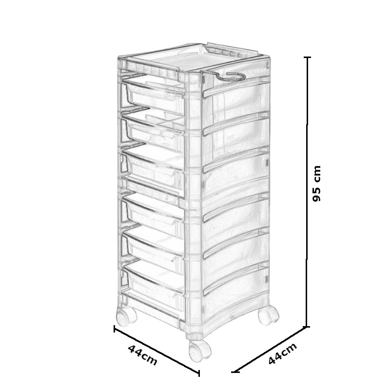 Kleur- en opbergwagen voorzien van 6 lades en een haardrogerhouder.