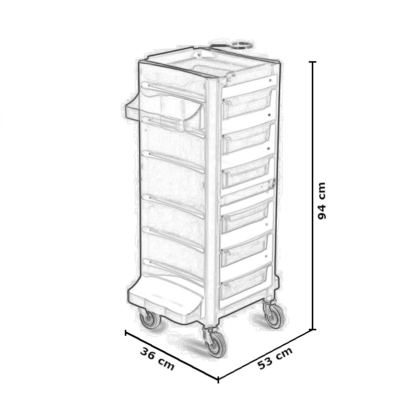 Kleur- en opbergwagen voorzien van 6 lades en een haardrogerhouder.
